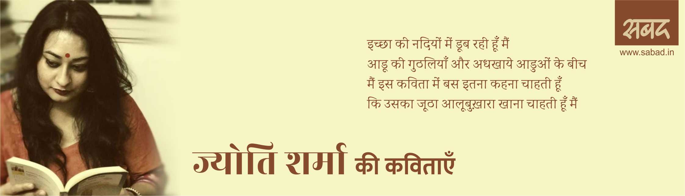 ज्योति शर्मा हरिद्वार में रहती हैं। उनकी कहानियाँ और कविताएं हाल के दिनों में चर्चित रही हैं। उनका एक कविता संग्रह- ‘नेपथ्य की नायिका’ बोधि प्रकाशन से प्रकाशित है। हाल ही में उनका नया संग्रह ‘बहुत दिन चुप रहने के बाद’ हिन्द युग्म प्रकाशन से शाया हुआ है। इसके अतिरिक्त एक साझा काव्य संग्रह भी प्रकाशित है। उनकी कविताएँ, कहानियाँ, डायरी अंश आदि साहित्यिक ऑनलाइन और ऑफलाइन पत्रिकाओं में छप चुके हैं। उनको ब्रज संस्कृति पुरस्कार प्राप्त हो चुका है। ‘सबद’ पर प्रस्तुत हैं उनके नए संग्रह से दस कविताएं :