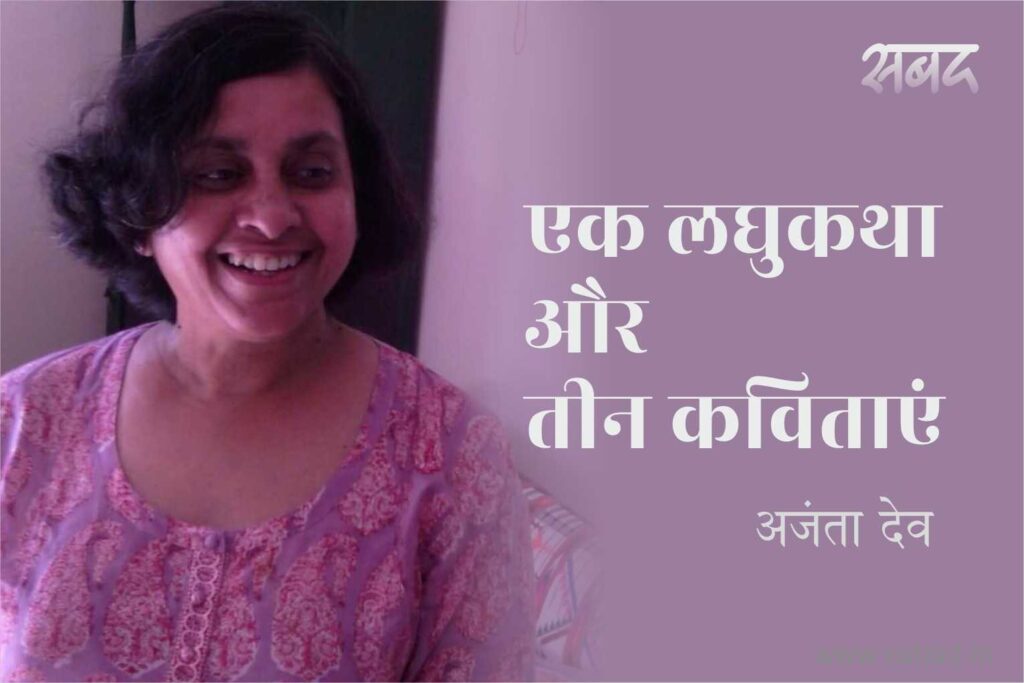 अजंता देव का जन्म जोधपुर में हुआ, यूं उनकी जड़ें बंगाल में रही हैं। राजस्‍थान विश्वविद्यालय से उच्च-शिक्षा पूरी करने के साथ ही वे शास्‍त्रीय संगीत (गायन), नृत्‍य, चित्रकला, नाट्य और अन्‍य कई ललित कलाओं में गहरी रुचि के साथ सक्रिय भी रही हैं। उनकी कविता में छंद, लय और सांगीतिकता मुख्य हैं। व्यंजना उनकी रचनाधर्मिता का मुख्य आधार है जिससे वे समकालीन विमर्श के पुर्ज़े खोलती हैं। ‘राख का क़िला’, ‘एक नगरवधू की आत्मकथा’, ‘घोड़े की आँखों में आँसू’ और ‘बेतरतीब’ उनके प्रकाशित काव्य-संग्रह हैं। कविताओं के अतिरिक्त गद्य में भी वे अभिव्यक्ति करती रहती हैं। उन्हें राजस्थान साहित्य अकादमी की ओर से विशिष्ट साहित्यकार पुरस्कार के लिए चुना जा चुका है। बांग्ला से नीरेन्द्रनाथ चक्रवर्ती व शक्ति चट्टोपाध्याय की कविताओं के और अंग्रेज़ी के जरिये ब्रेष्ट की कविताओं के हिन्दी में अनुवाद। कुछ समय पत्रकारिता करने के बाद अब भारतीय सूचना सेवा में। ‘सबद’ पर प्रस्तुत है उनकी एक लघुकथा और तीन कविताएं :